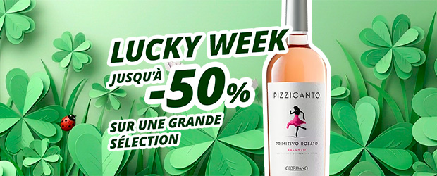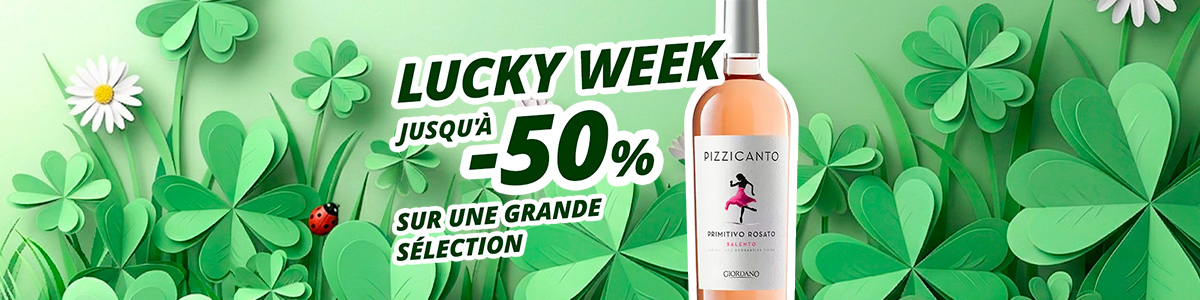 Regarde cette sélection, regarde ces réductions et regarde comme cette Lucky Week te sourit : jusqu'à -50 % sur tout ce que tu vois et +100 % pour ta bonne humeur d'amateur de vin toujours à la recherche de bonnes affaires. Tu les as trouvées : quelle chance ! 🙂
